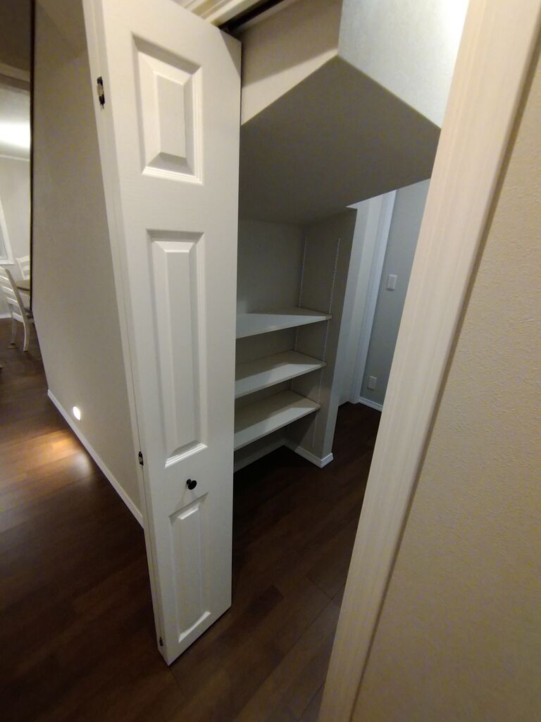 1階書斎の奥の折り戸を開けると、納戸に繋がっています。