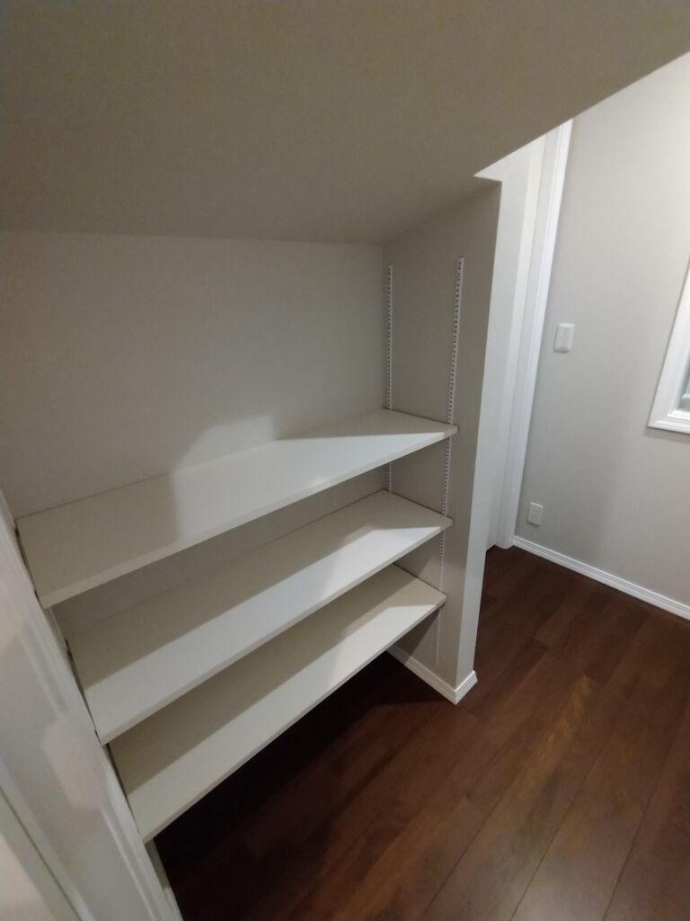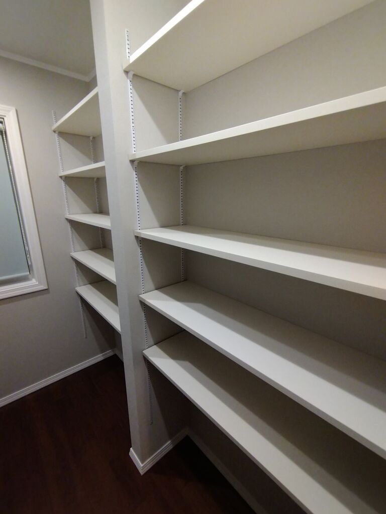 階段下である左側は3段、右側は5段の可動棚を造作してもらいました💡