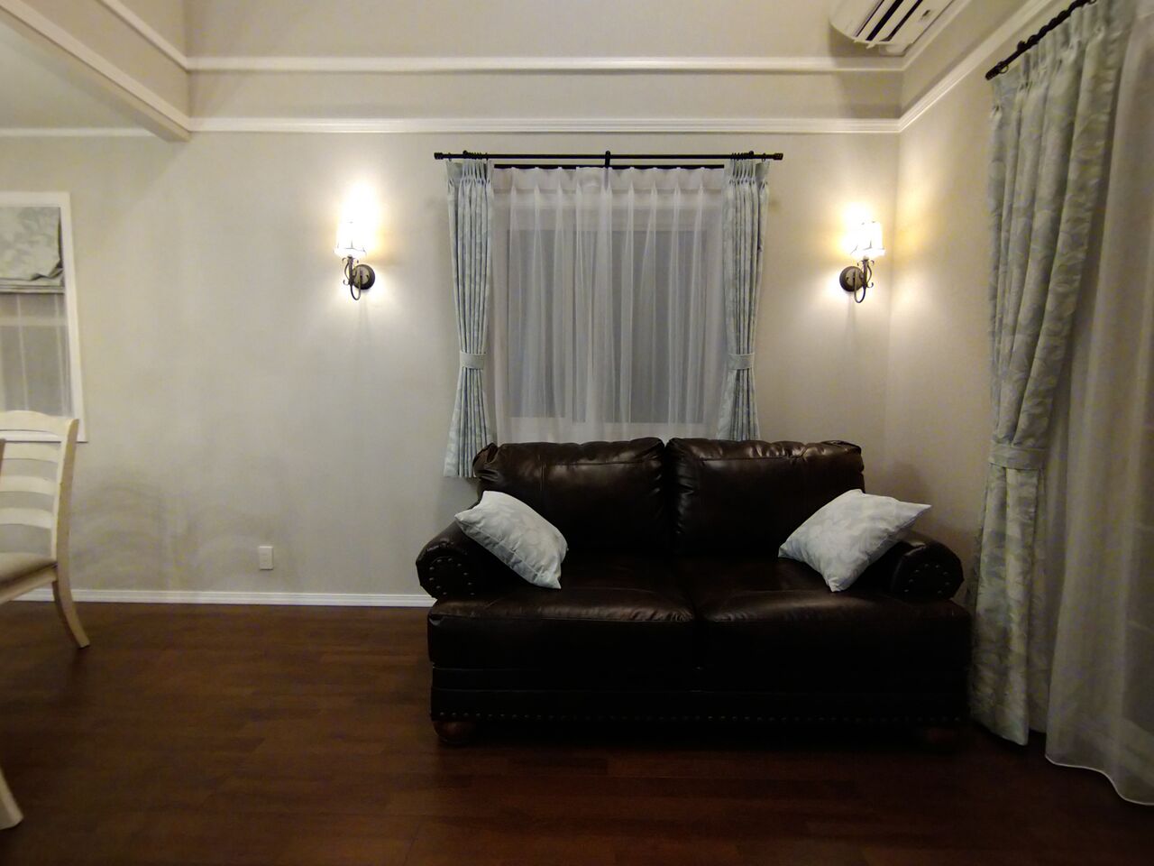 ソファ側の壁のブラケットライトは、DAIKOのDBK-40160Yです。