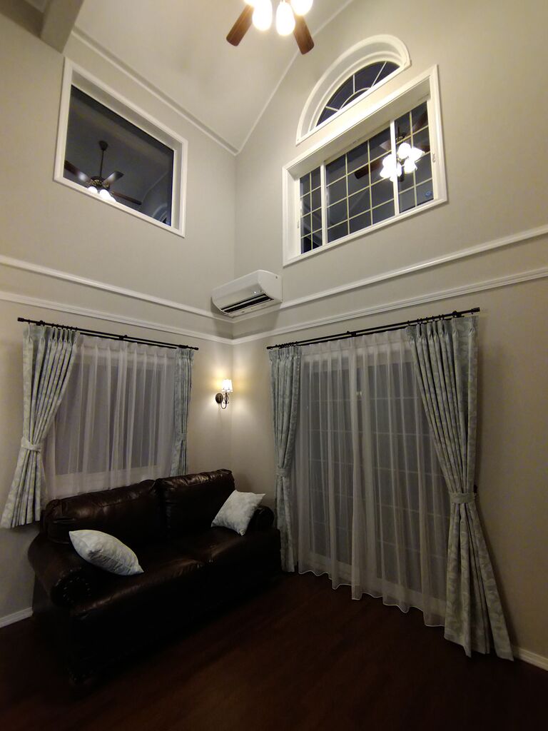 ここだけではなく、リビングのカーテンや1階書斎のシェードも同じものです。
