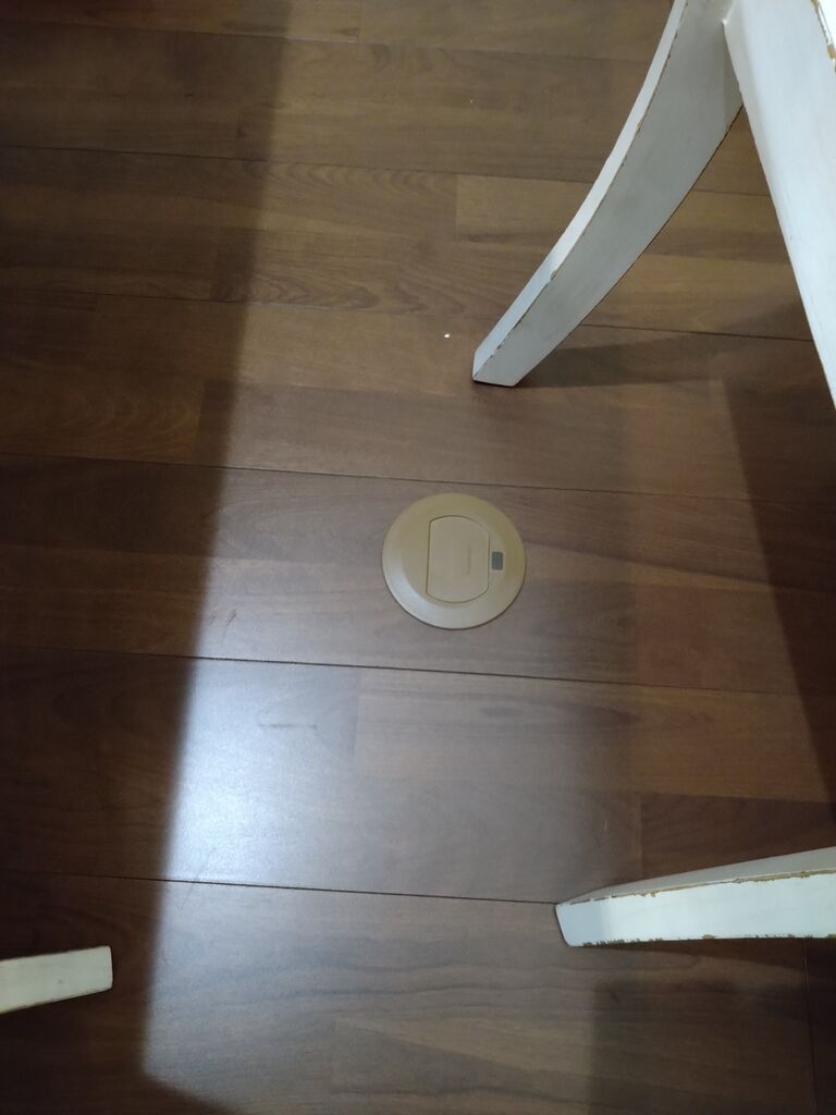 そしてカウンターとダイニングテーブルの間辺りに、床埋め込みタイプのコンセントも設置。