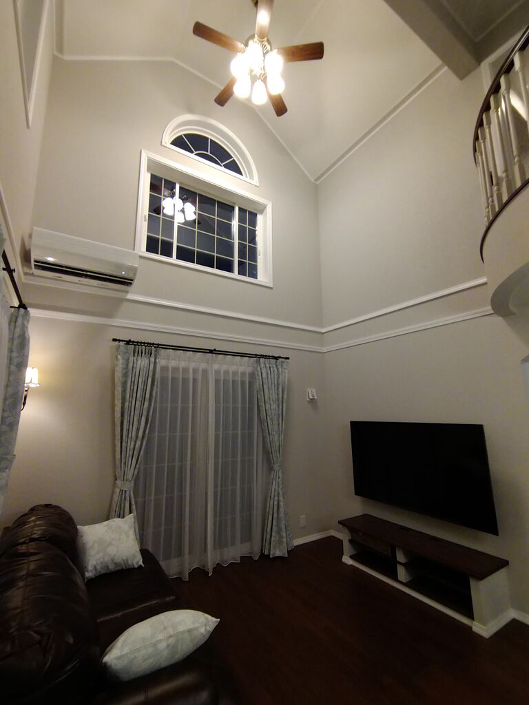 右上の窓があるのが寝室で、そこのドアから吹き抜けホールを通って、左のドアの先が2階書斎となっております✨