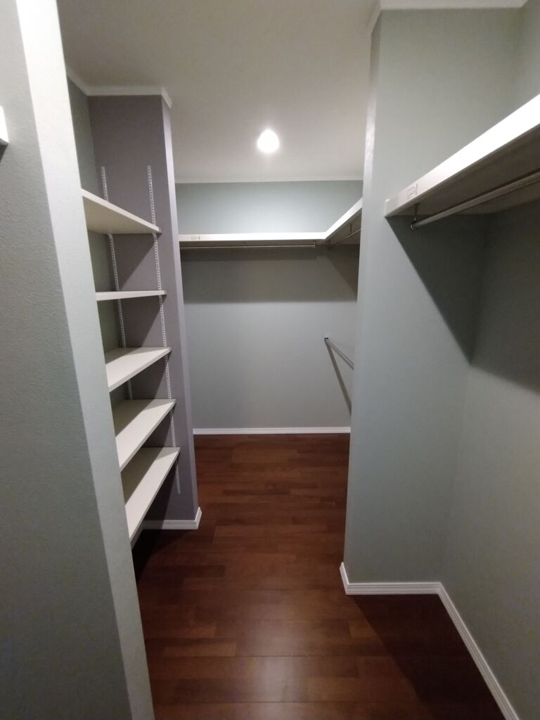WICに入って左側と正面が私(夫)用のスペース、奥の両側が妻用のスペースとなっています💡