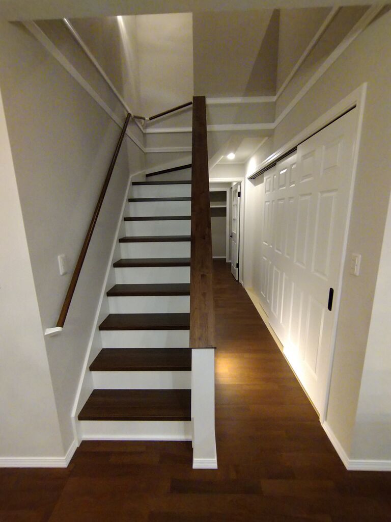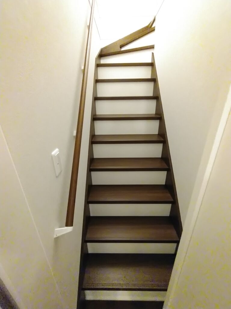 仕様は2階への階段とほぼ同じですが、横の斜めの板(側桁「がわげた」と言います)の色が違います💡