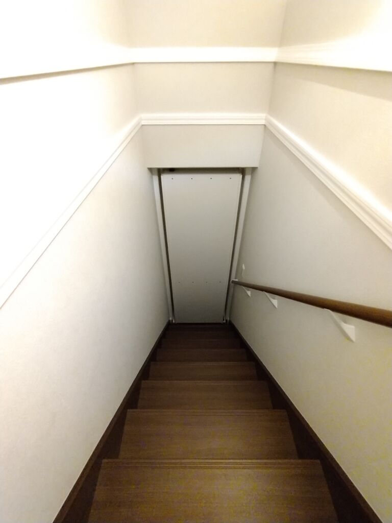寝室の飾り棚の奥に、小屋裏への階段が隠されています🤗
