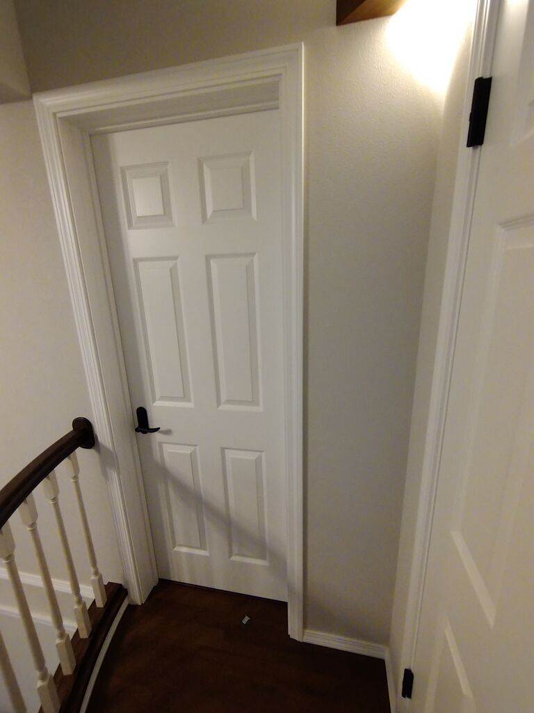 リビング上部の吹き抜けに繋がっている窓と、書斎に続く吹き抜けホールへのドアがあります💡