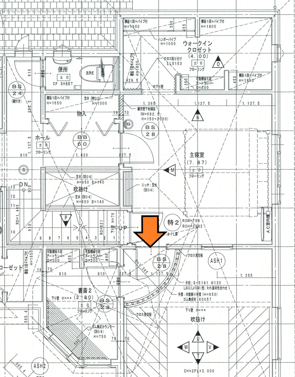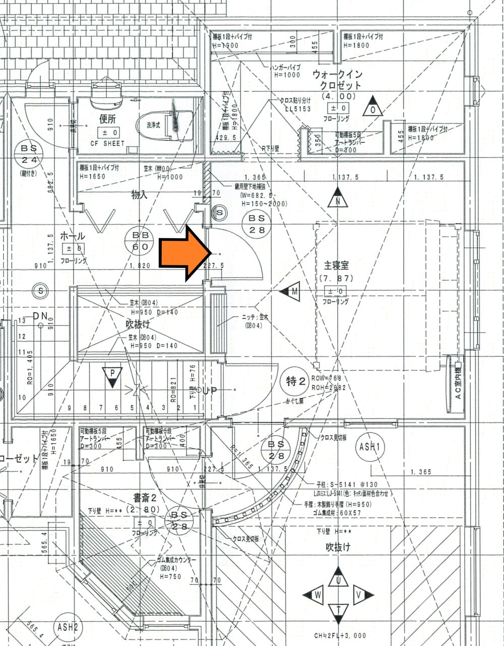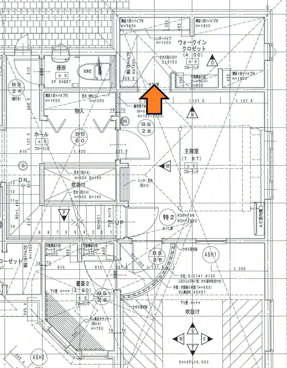 間取り図では、寝室に小屋裏への入り口があるように見えますね!