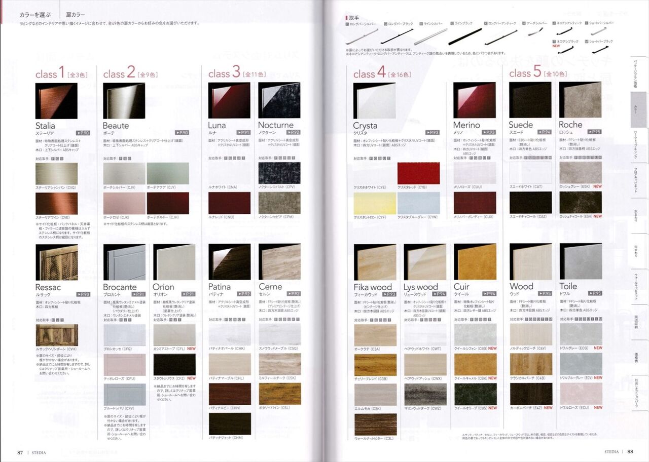 ちなみにクリナップキッチンの扉カラーはclass1~5に大きく分けられており、class1が最も高いグレードとなっています。