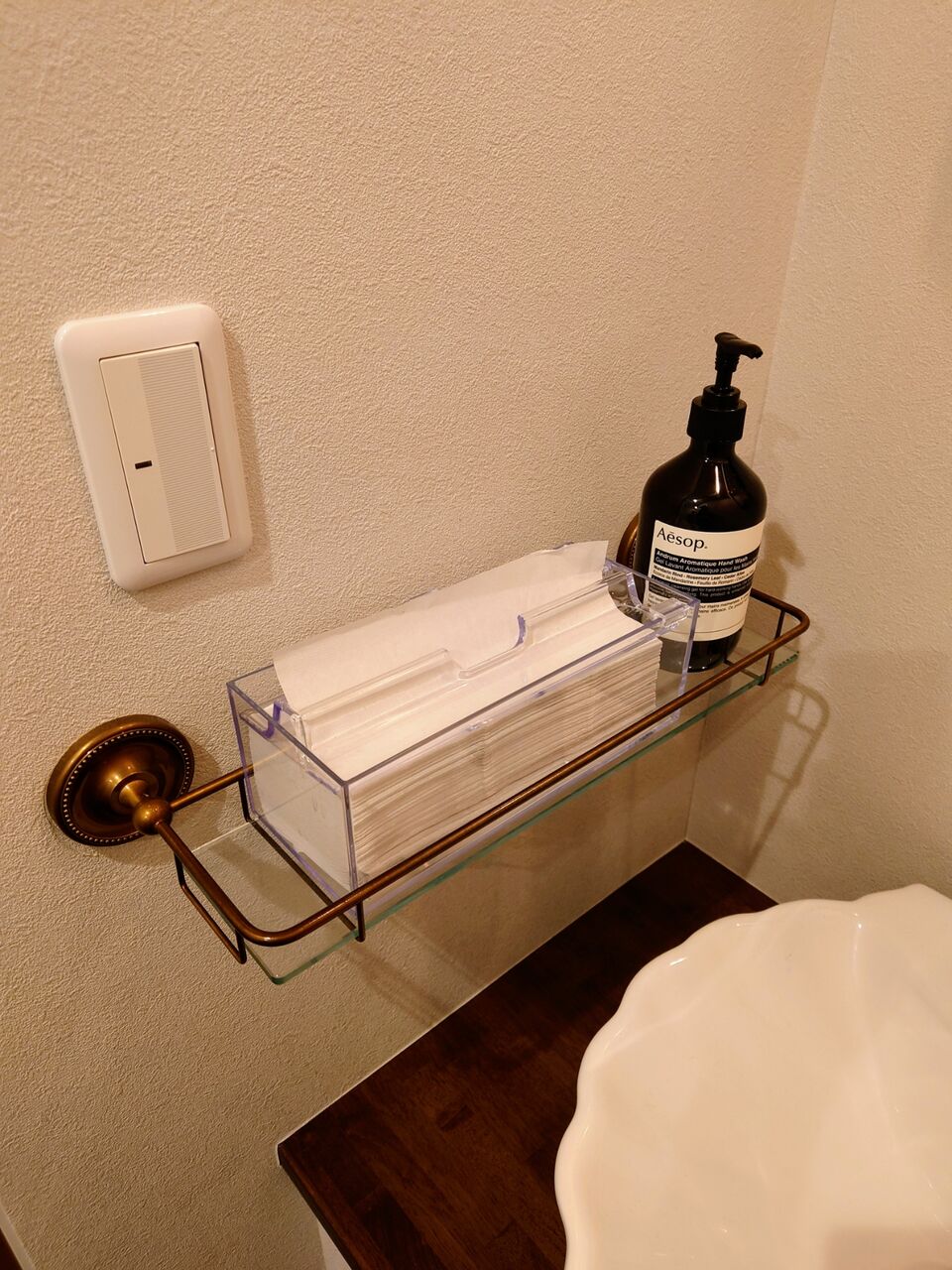 ここはただいま手洗いも兼ねているので、衛生面を考えてタオルではなくペーパータオルを置くことにしました🤗