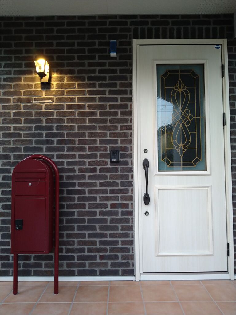 家の外壁レンガが濃い茶色だったので、玄関ドアと同じく白系にしました✨
