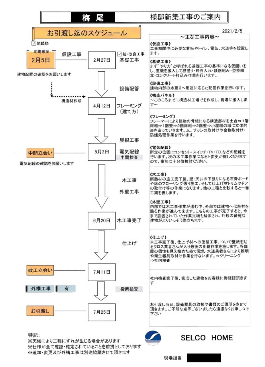 そして最後に、地鎮祭以降のスケジュールをいただきました。