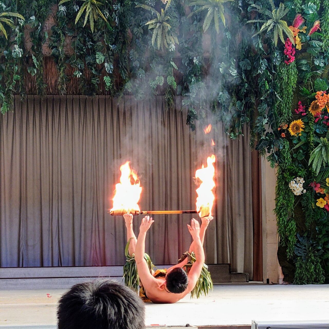 ウォーターパーク内の食事する場所やフラダンスショーの席などは、サンダルがあると過ごしやすいです💡