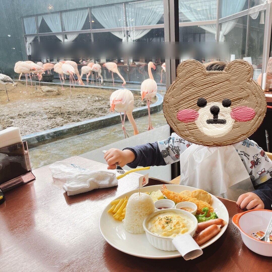 店内でフラミンゴが飼育されており、フラミンゴをガラス越しに見ながら食事ができるんですね~✨