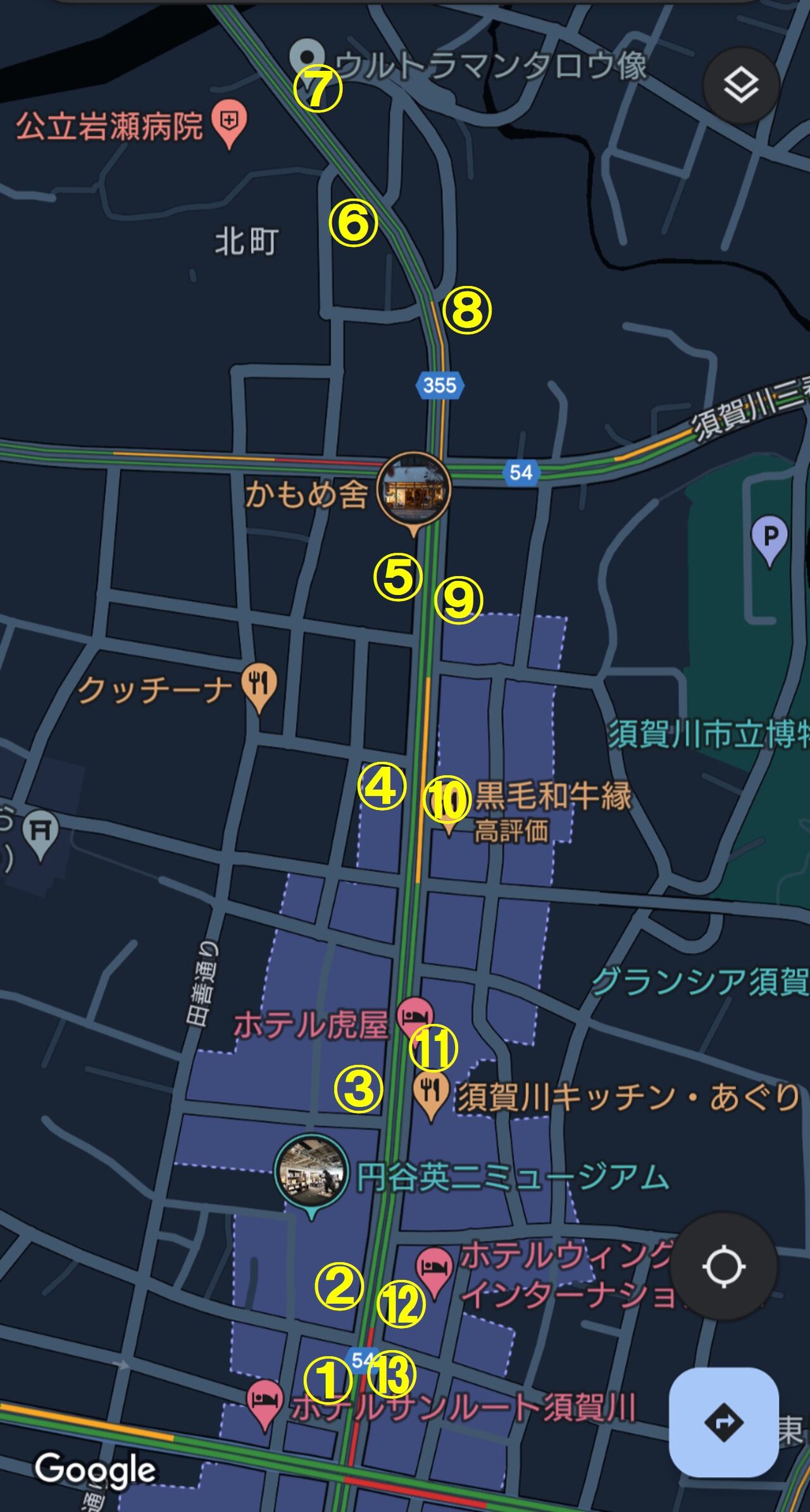 ②と③の間に円谷英二ミュージアムと書いてありますね。