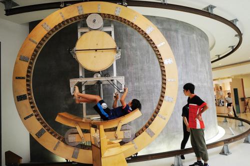 入ってすぐに目を引くのはこの大きな丸い装置です。