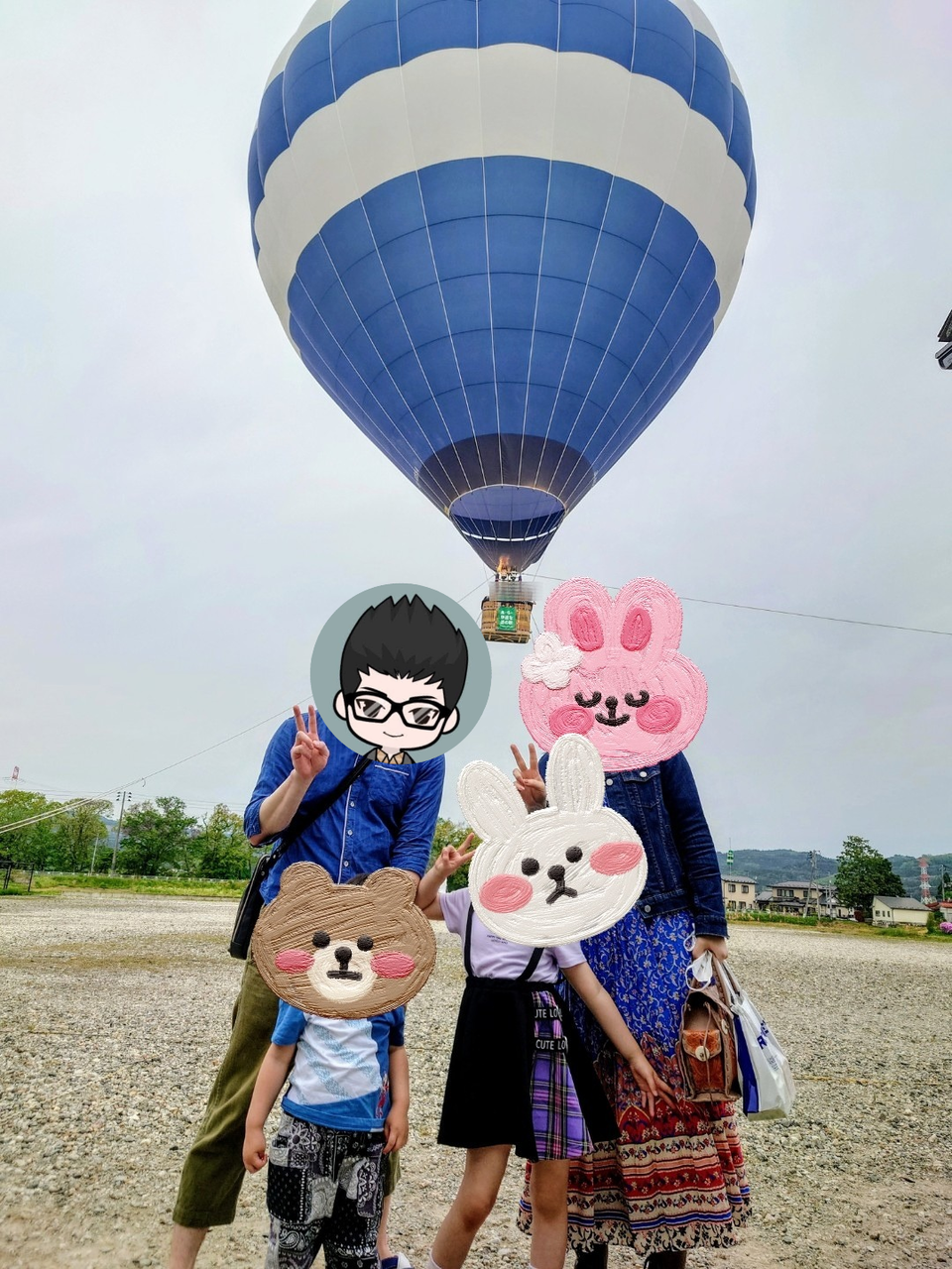 本当にたまたまですが、家族みんな青い服を着ていて気球も青いので、合わせたかのようなブルーコーデになっちゃいました🤣