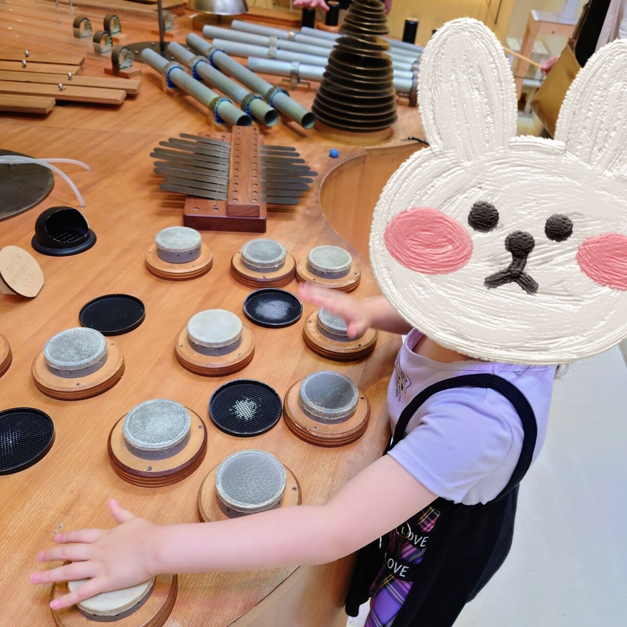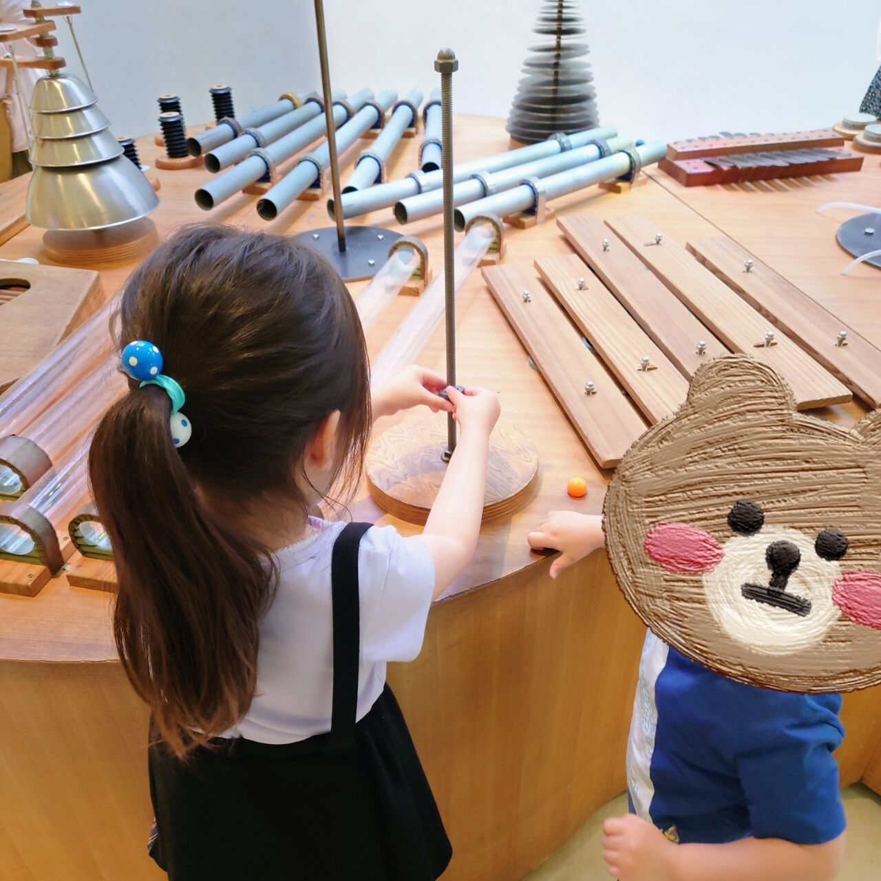 普通の博物館や美術館はまだ幼稚園年長と年少の子供達には難しいかもしれませんが、音を鳴らしたり色々と触ったりして楽しめるココならちょうどいいです🤗