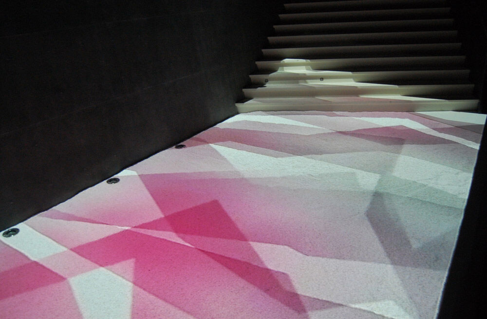 もっと進んでいくと、一面に敷き詰められた砂利に光の映像が投影されている幻想的な展示がありました。