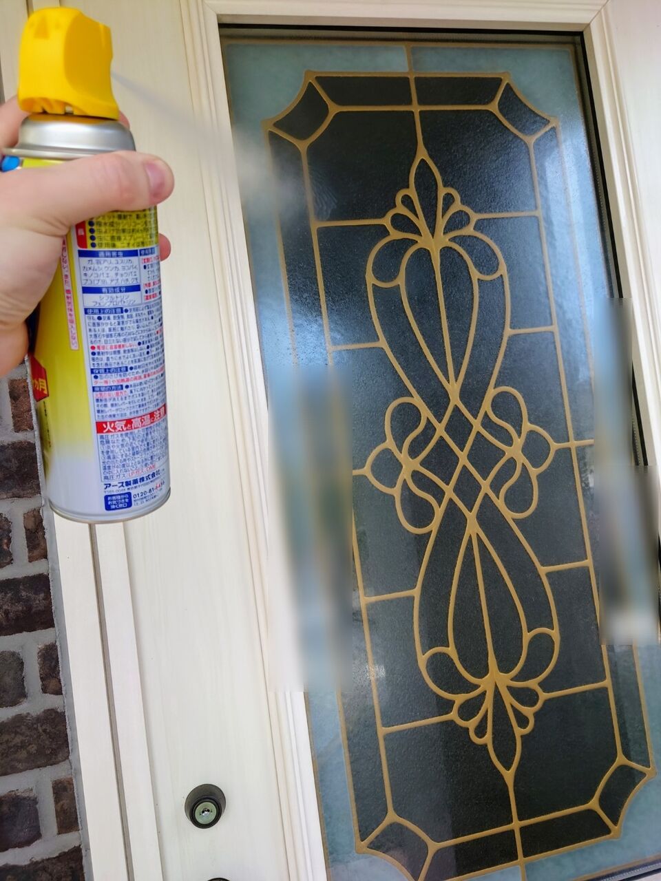 さらにそれに加えて「虫こないアース 玄関灯・外壁に」をドア周りに散布します💡