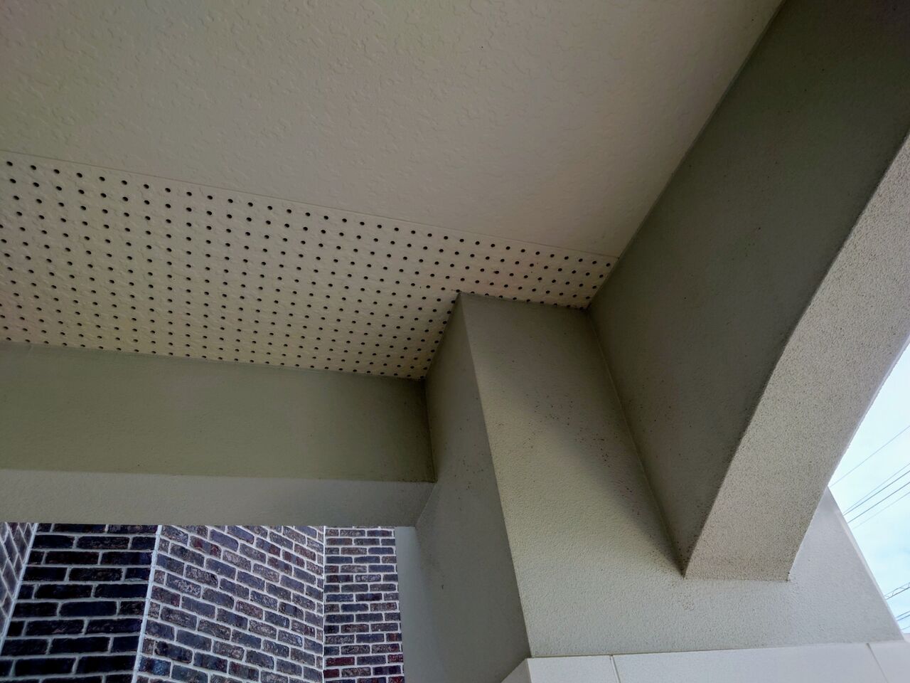 玄関前のポーチの天井付近には、クモが巣を張りそうな場所ばかりです。