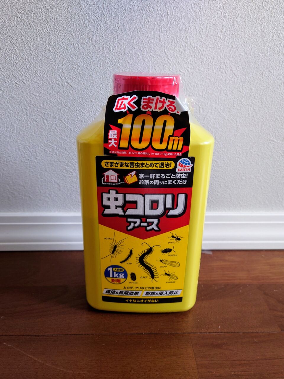 まぁ脚の多い虫ってのは地を這ってきますからね、これを撒いてバリアを張ります🤗