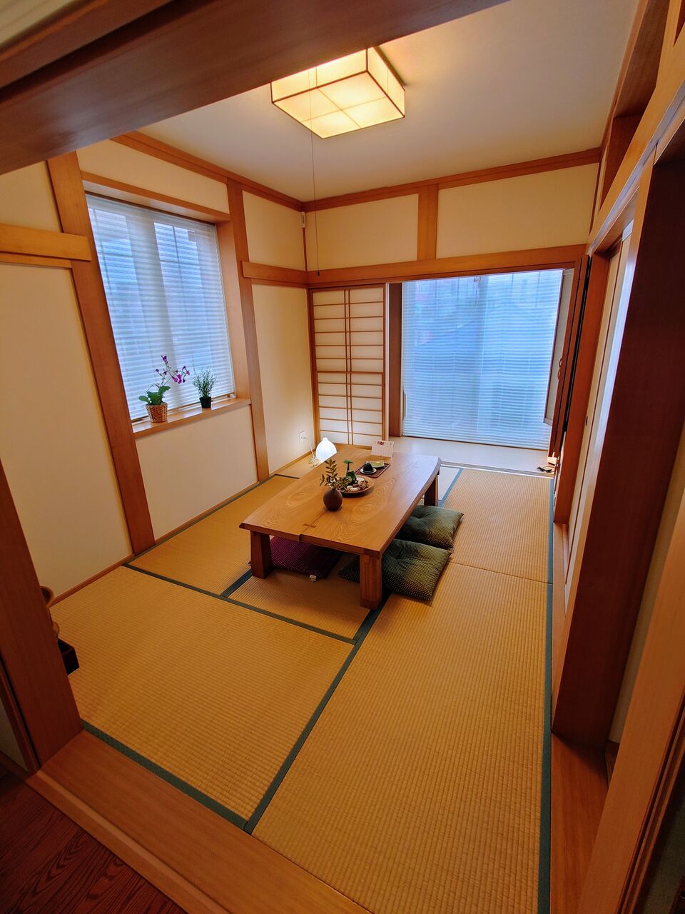 6畳の和室で、畳は最近流行りの琉球畳や樹脂畳ではなく、伝統的なイグサの畳です🤗