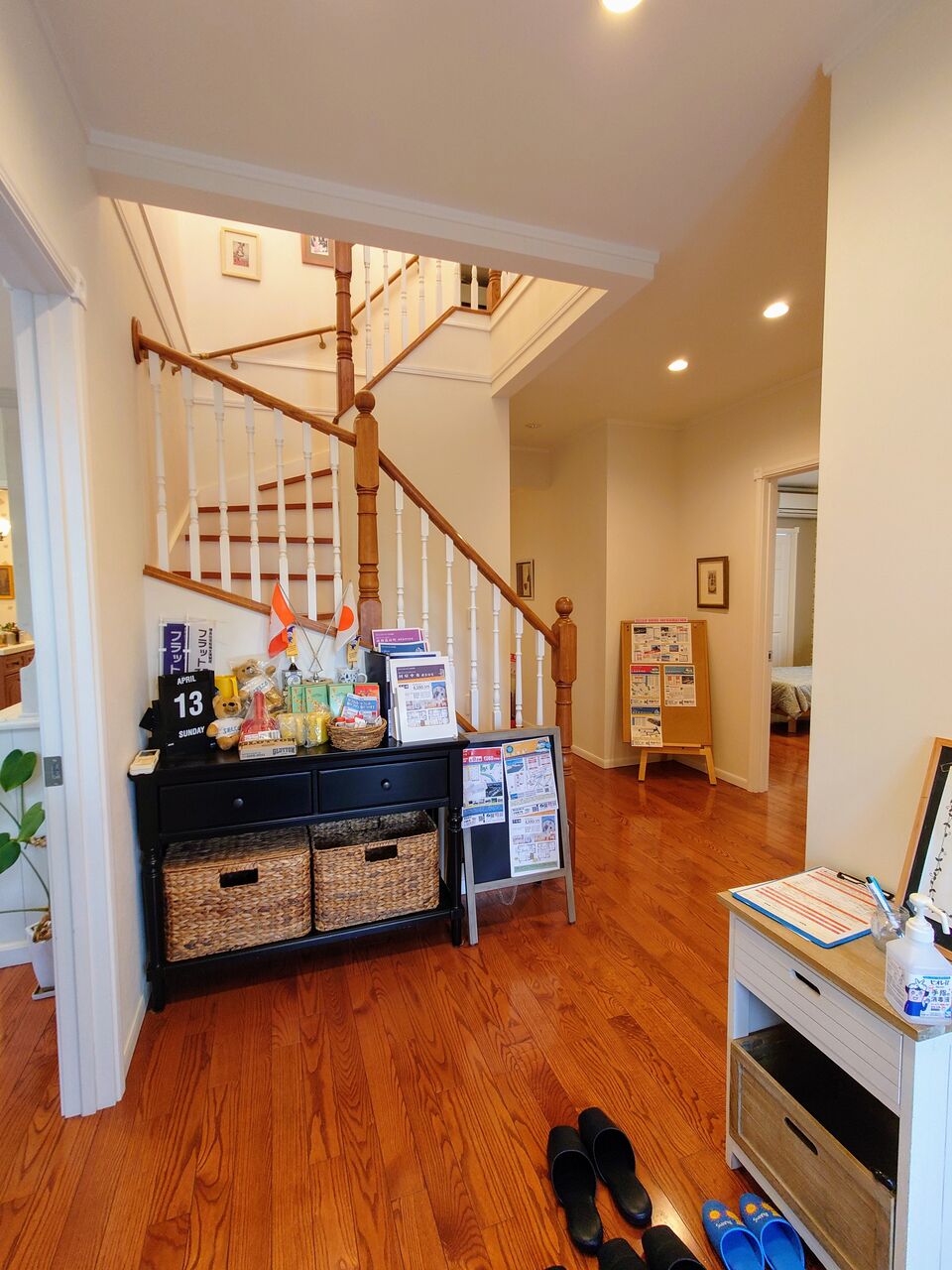 玄関の真上は吹き抜けになっており、上から光が差して明るい玄関でしたね✨