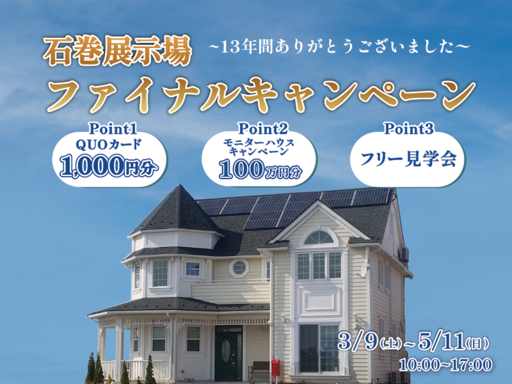 出典:<5/11まで>石巻展示場ファイナルキャンペーン|セルコホーム仙台より