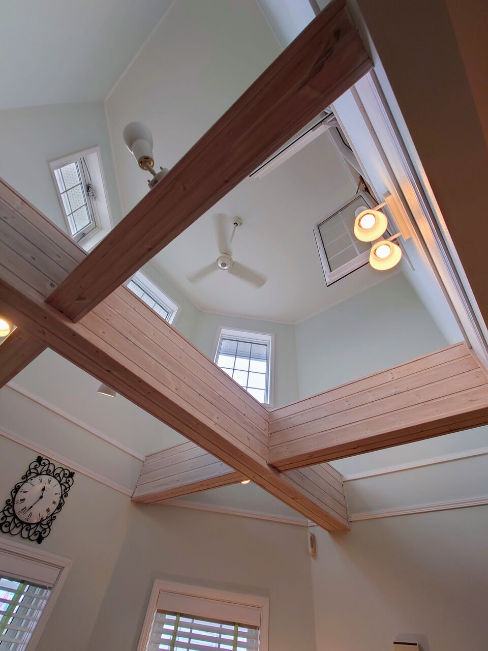 リビング上部は吹き抜けで、化粧梁の存在感がスゴいです😂