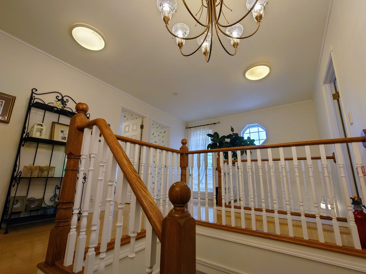 階段のある玄関ホールは吹き抜けになっていて、天井が高いですね✨
