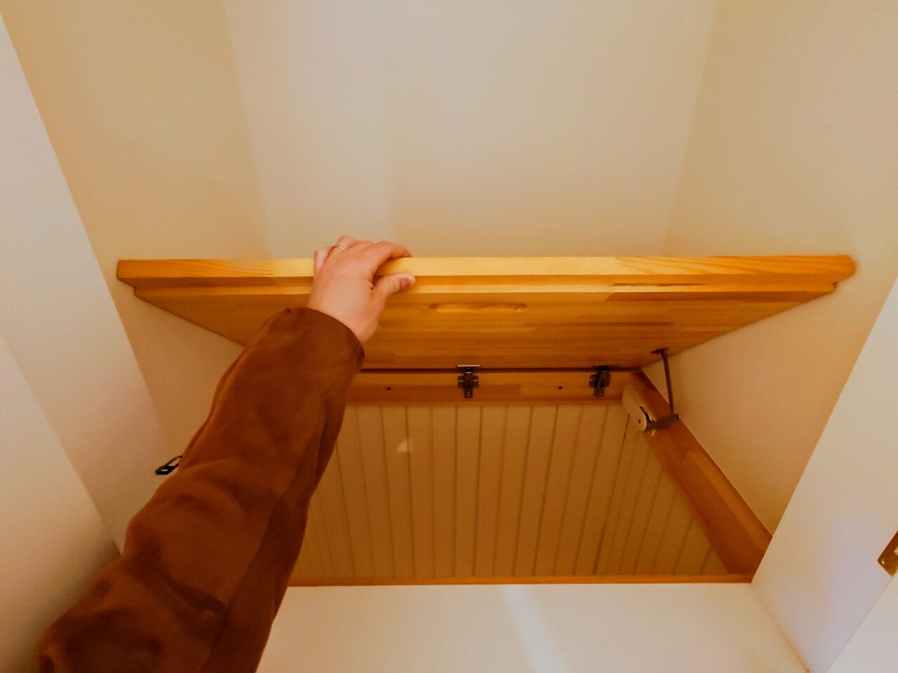 開けてみると何も入っていないですが、底板が上げられそうですね💡