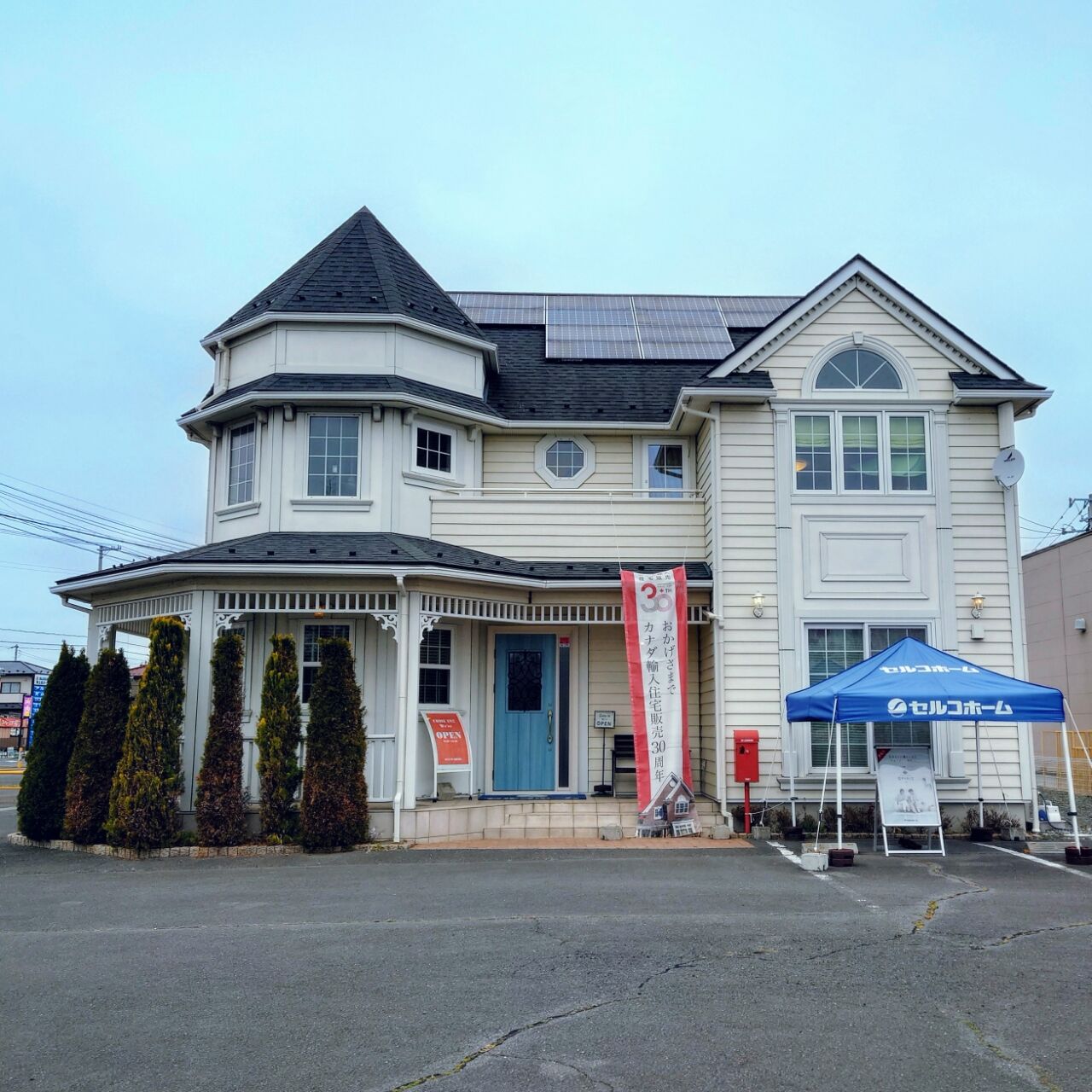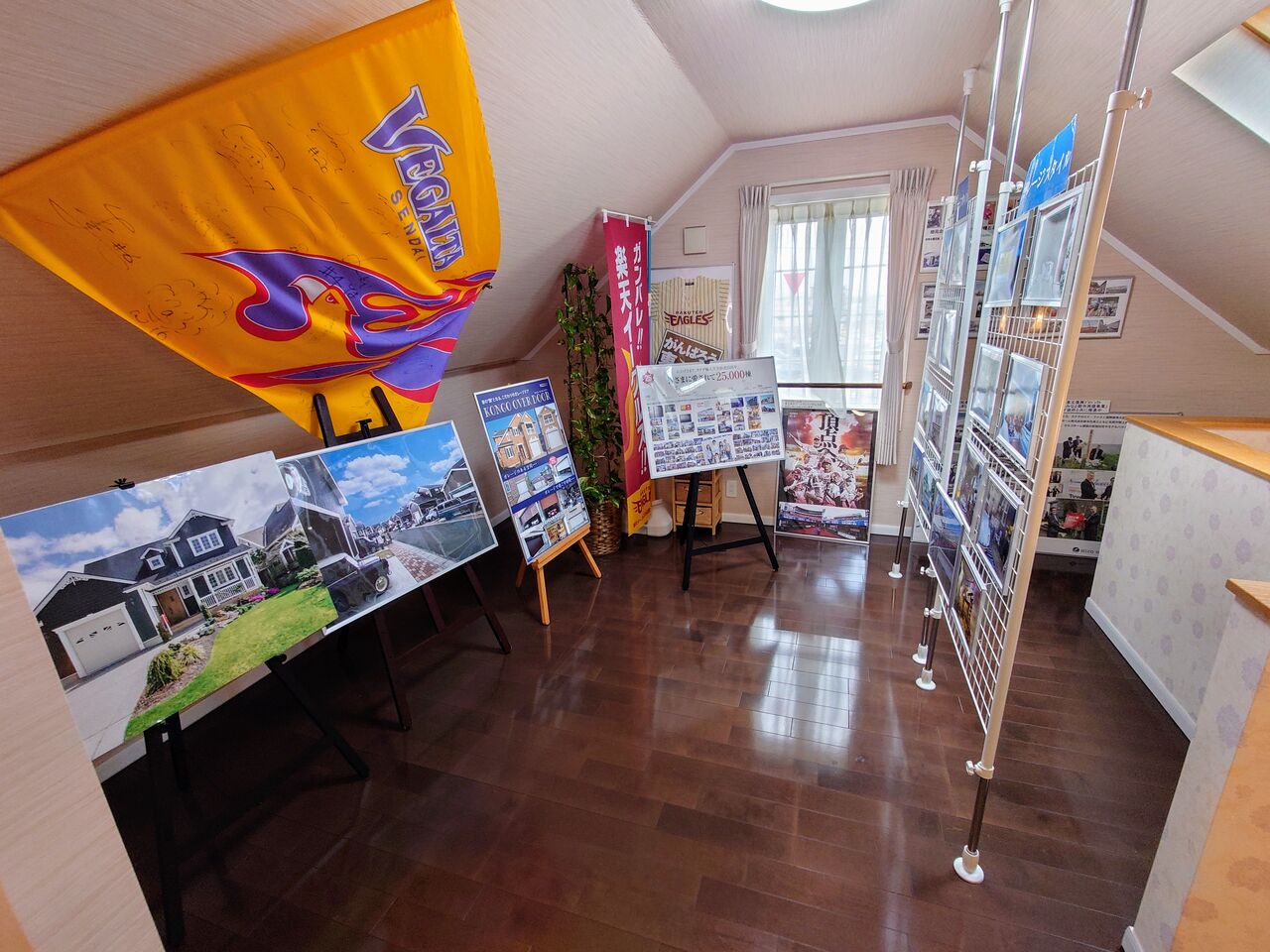 実例写真と共に、セルコホームがスポンサーとなっているベガルタ仙台のフラッグ(サイン入りですね!)と、