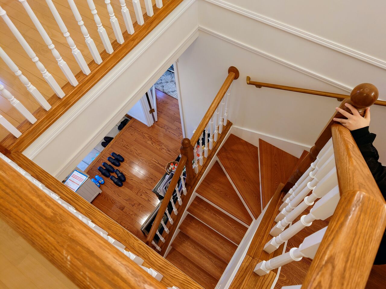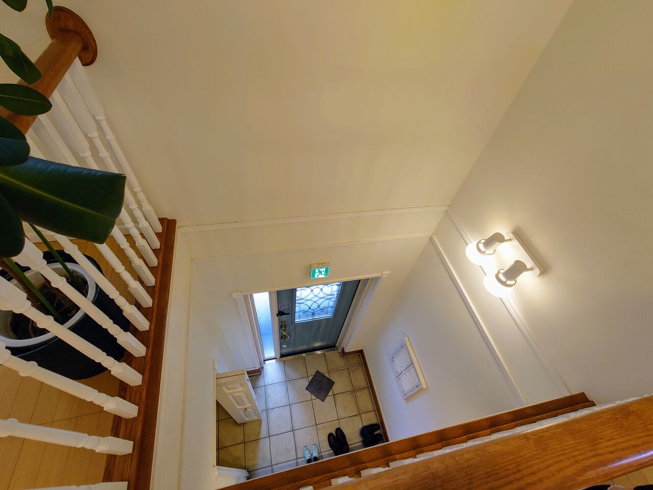 途中で見下ろすと玄関が見えます。