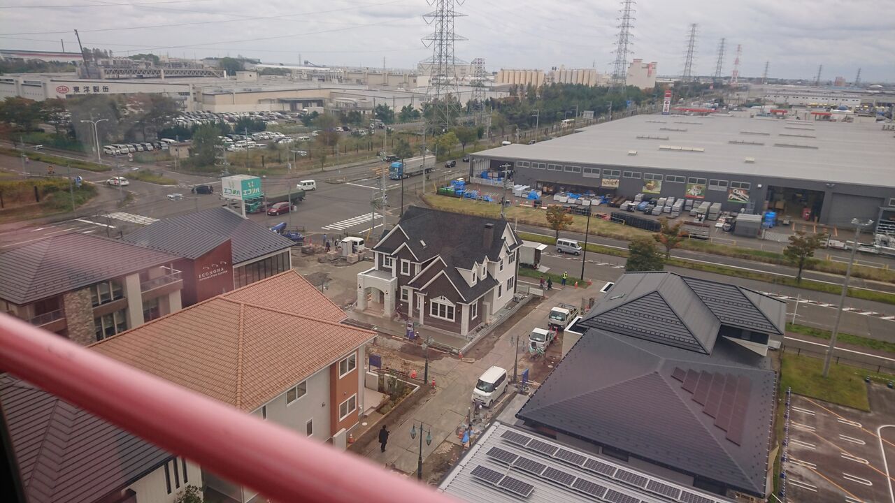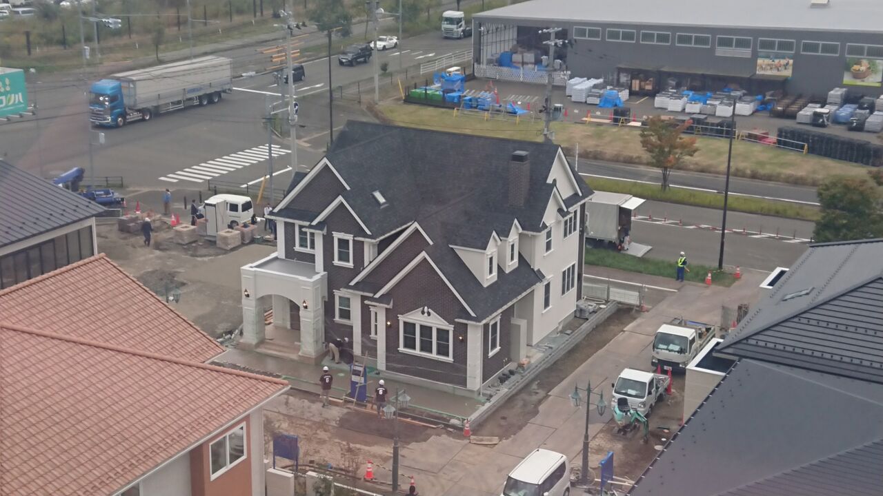 3人で観覧車に乗って景色を見ていると、眼下には建築途中の家がたくさん。