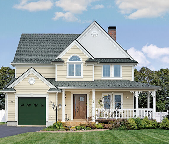 横貼りのサイディングとカバードポーチがアメリカンな雰囲気あるな…!