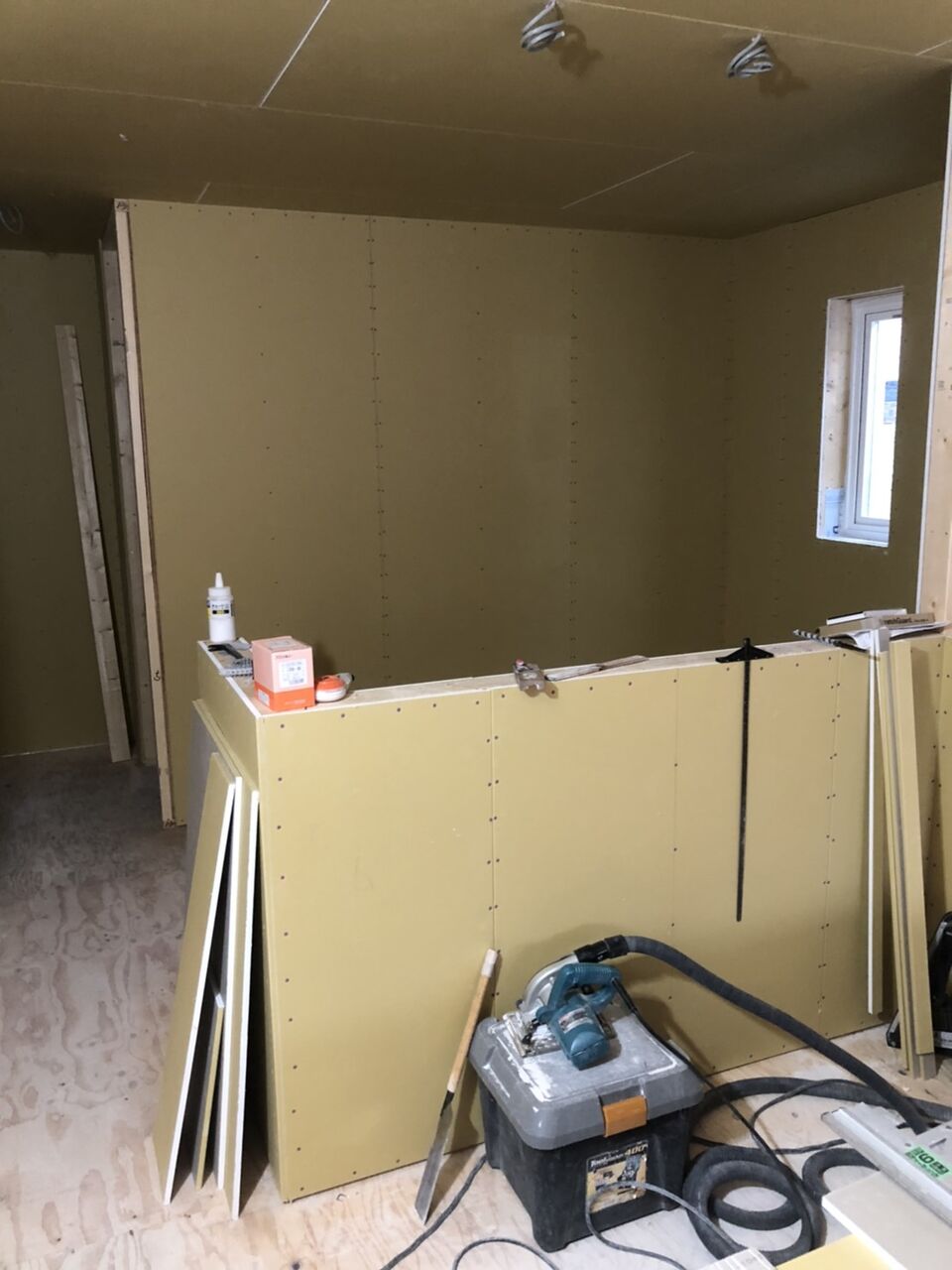 断熱材も詰め終わり、石膏ボードを貼る作業になっています✨