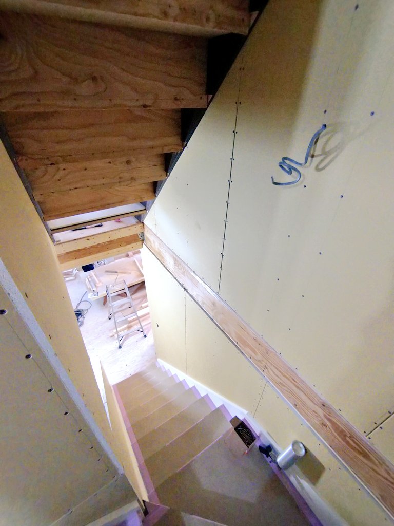 石膏ボードが既に貼られている側には壁一面に本棚を造作してもらう予定です✨